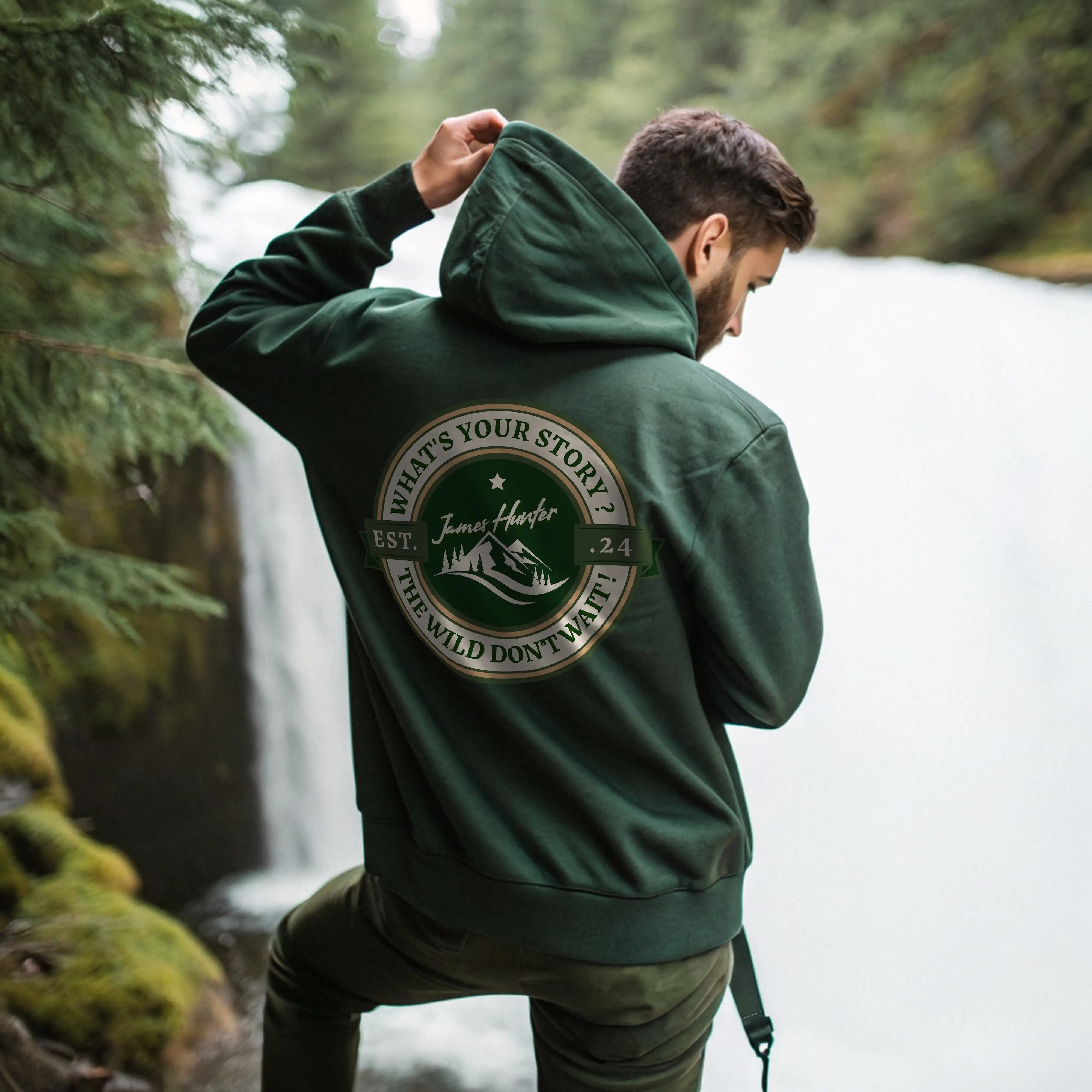 This white hoodie carries a bold message across the back: EARTH. LIFE. RESPECT.